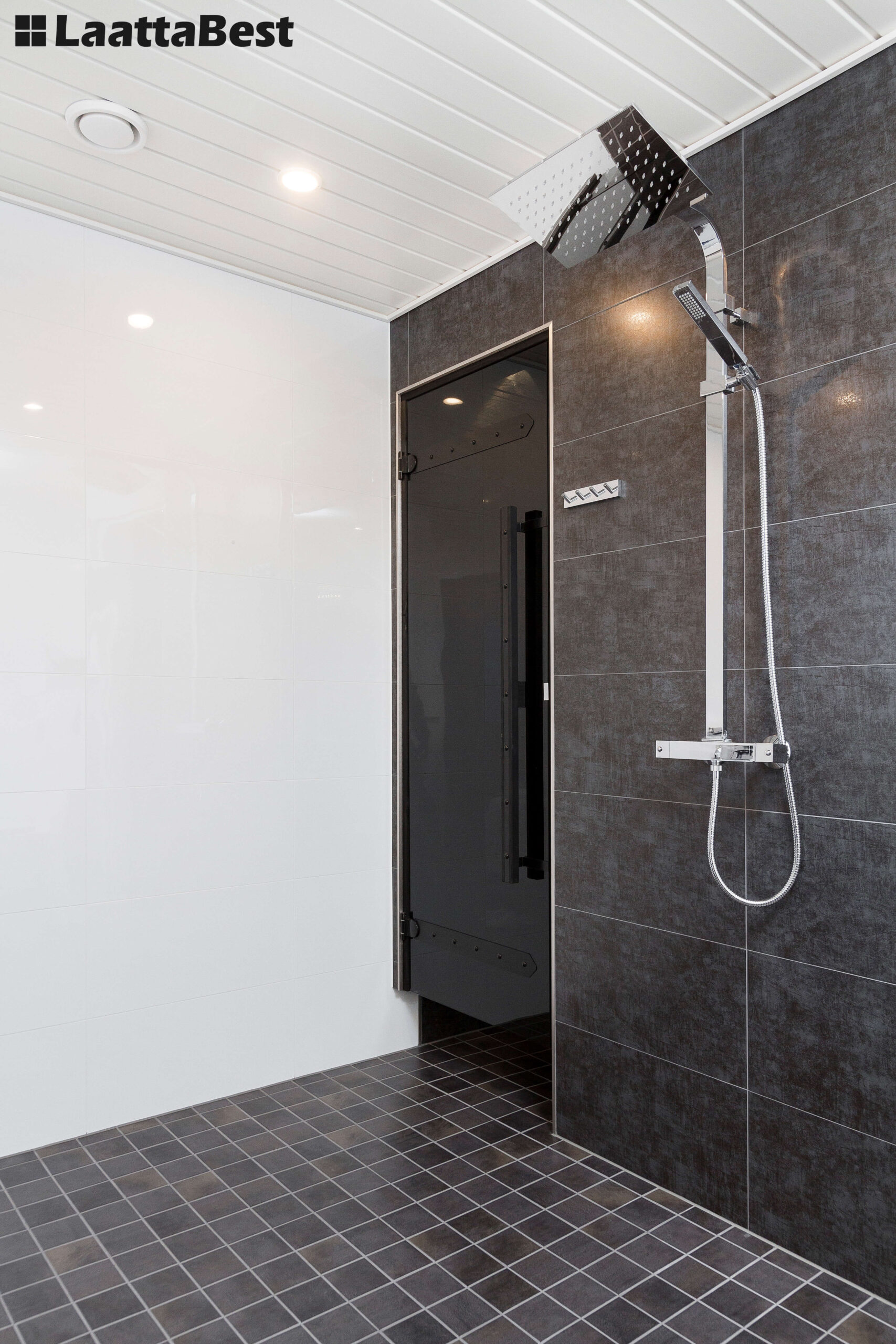 Seinälaatat 30×60 Unique Bianco Lucido ja Dot Piaggio Antracite