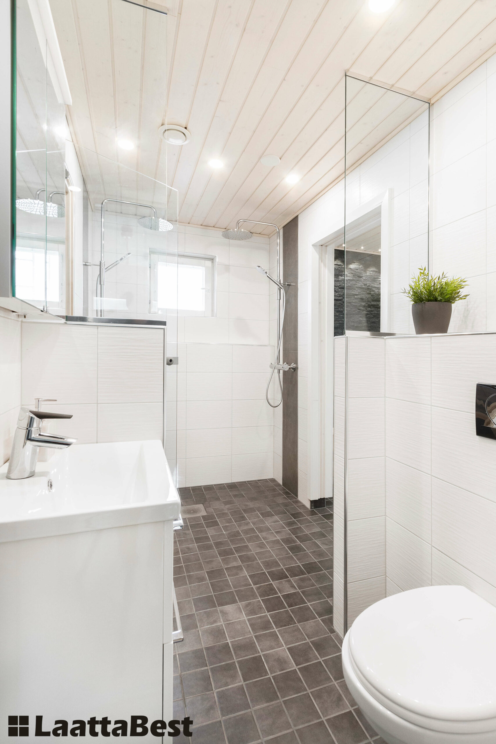Seinälaatat: CRT Garda White ja Pukkila Altaj Grigio Scuro