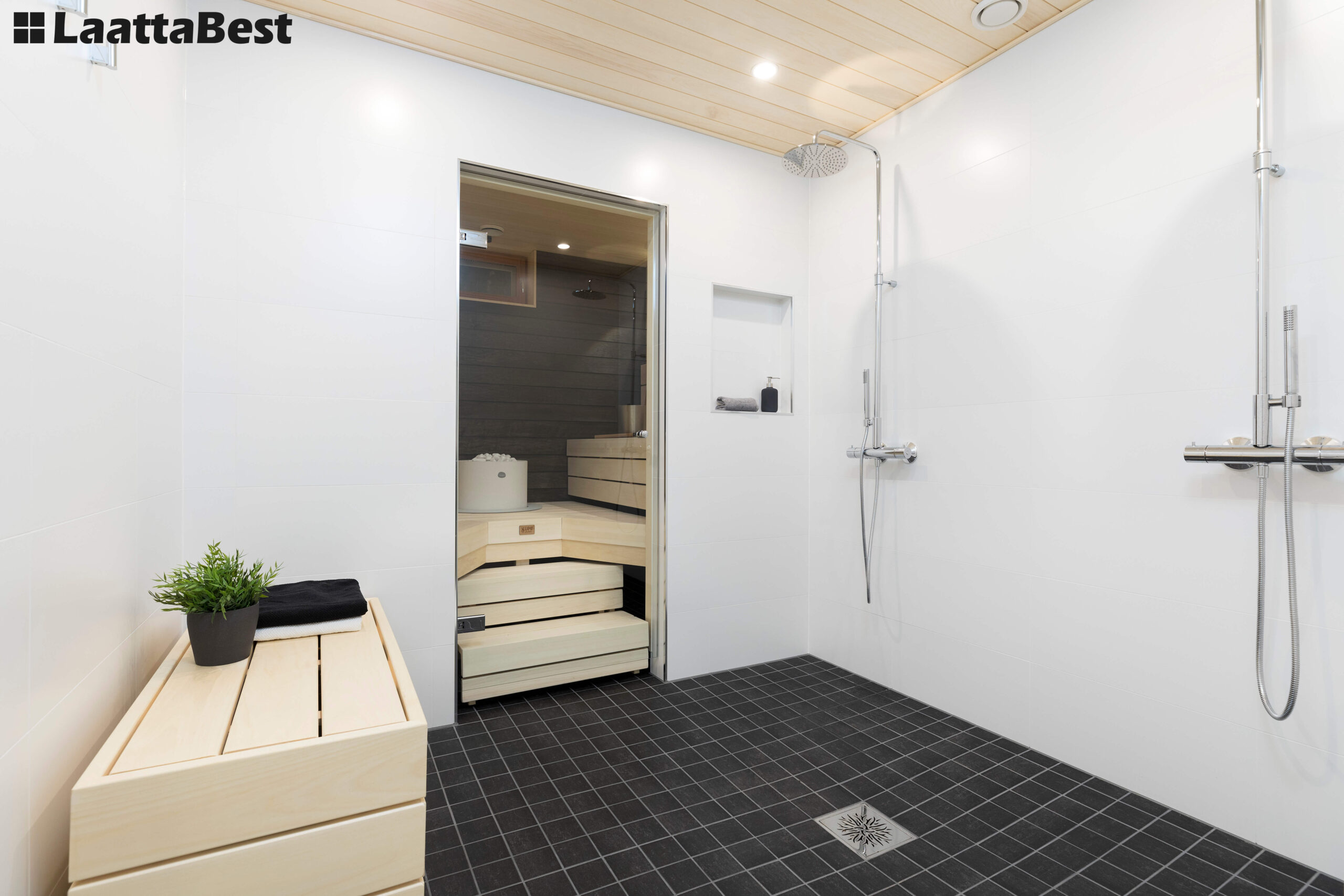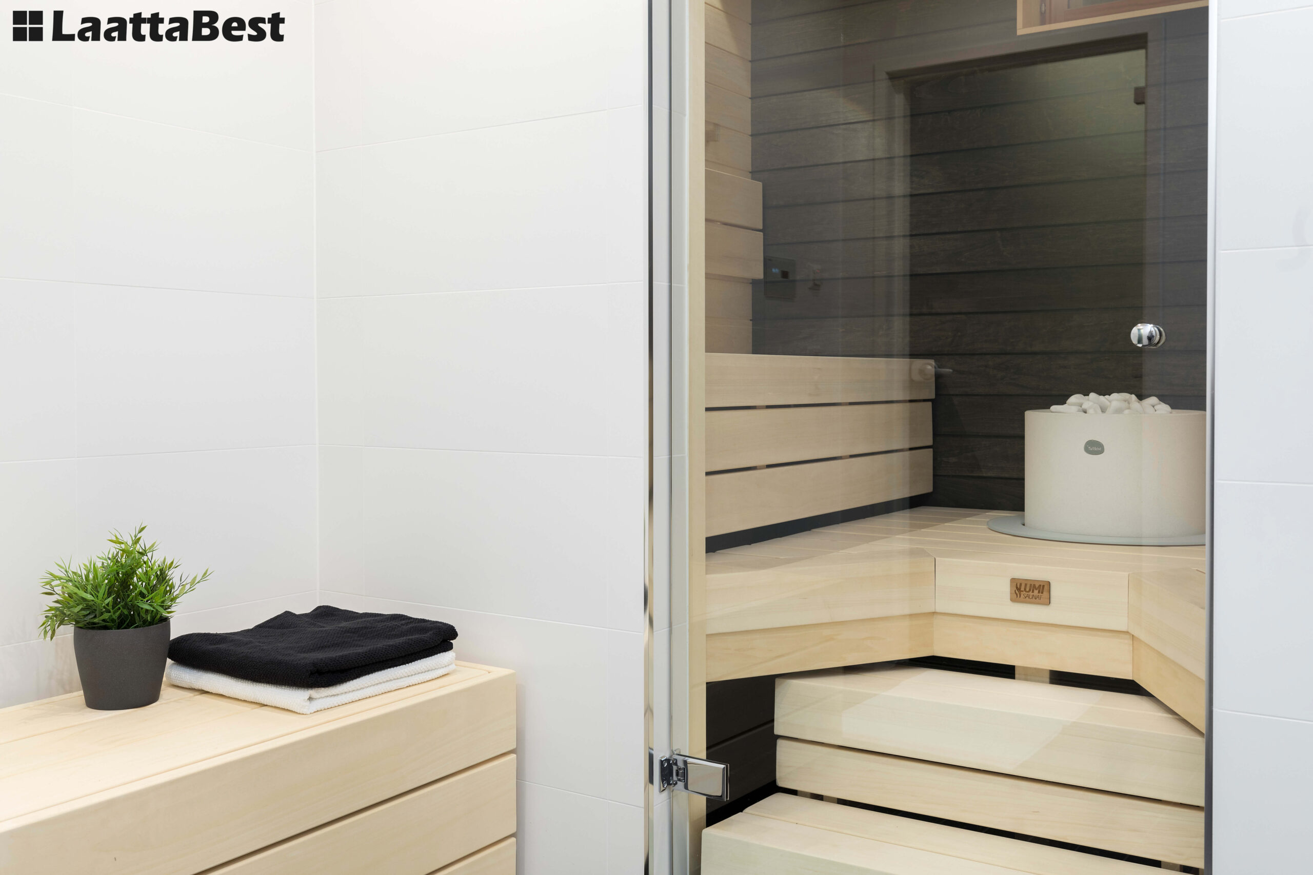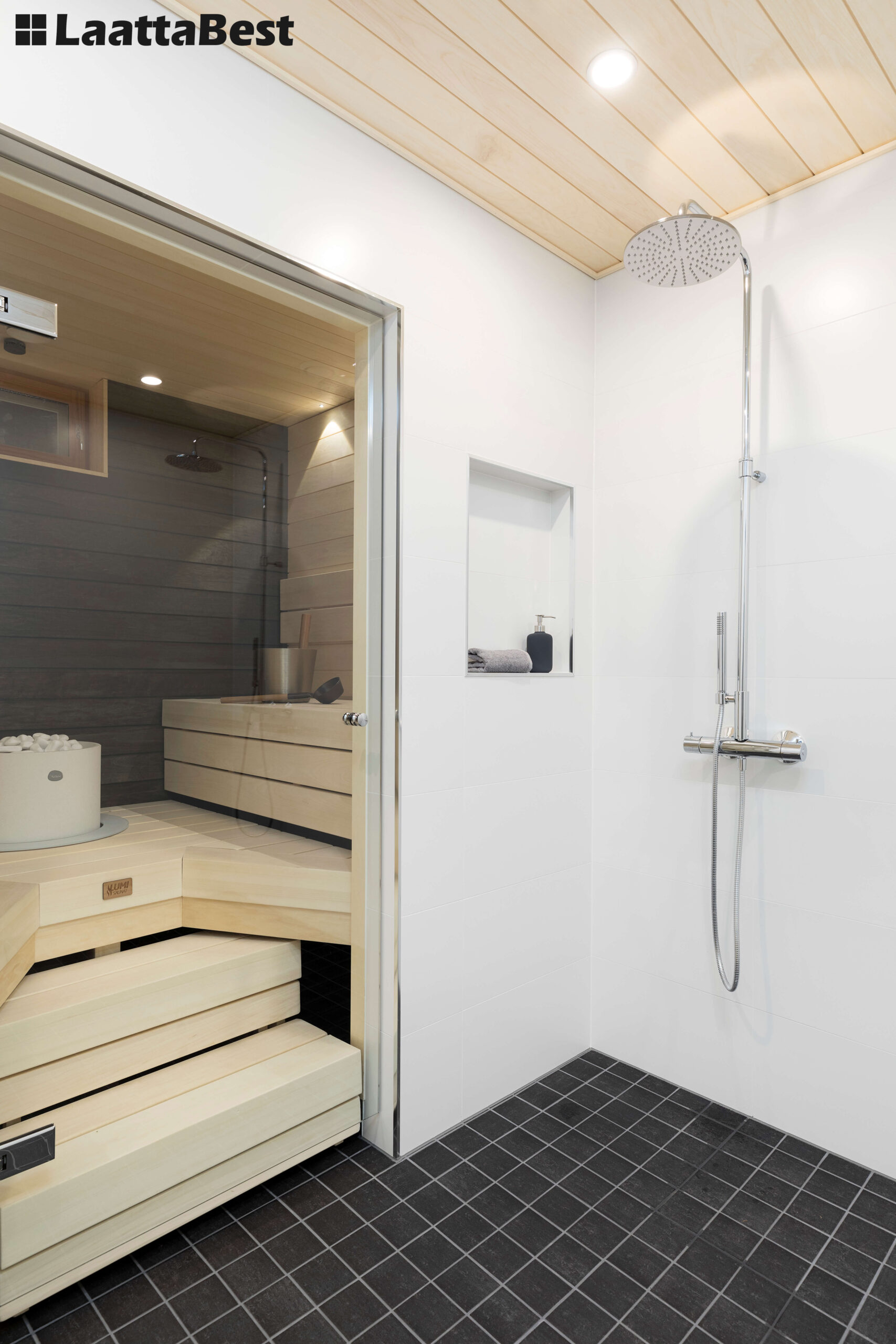 Tyylikäs uudistus sauna- ja pesutiloihin, Vantaalla omakotitalossa.