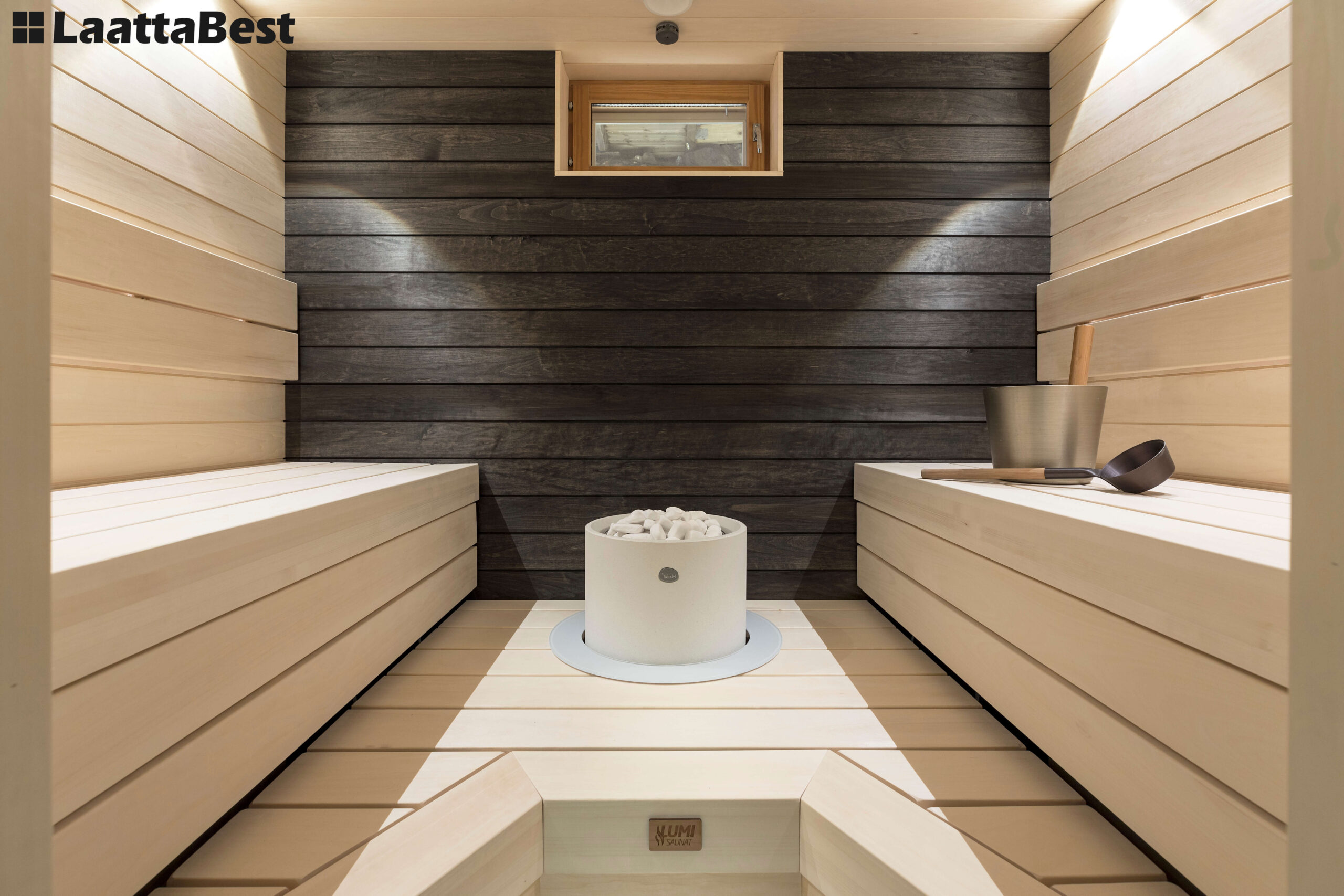 Saunan päätyseinä käsiteltiin mustalla saunavahalla
